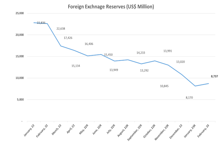 This graph is classic Trend graph. It can be presented as analysis but to call it analysis would be no less than insult to the term analysis. It just shows the high level of reserves in Jan 22 and their rapid fall over thirteen-month period. Analytical question is finding the factors (contributory & contextual) which caused that fall.