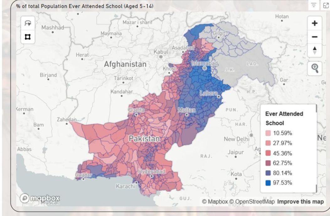 44 % of school age children are out of school in our country. This is despite the extra resources directed to the provinces who have the responsibility of education portfolio exclusively. The situation is worse in the case of girl children and certain regions where the out of school children is highest. These are the areas that have also received maximum funding, but the school enrolment remains low.