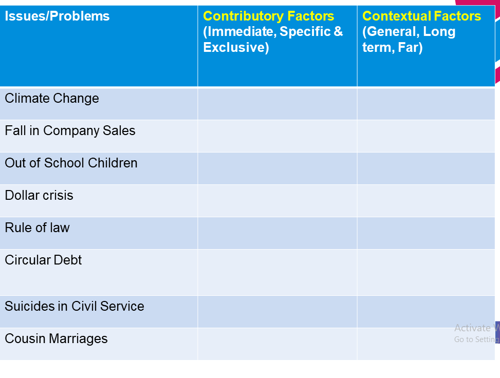 The distinction between the contributory and contextual factors is crucial in mapping the pathway to present problem. Too many cliches and stereotypes are always circulating when it comes to policy and business problems. The purpose of analysis is to identify the contributory factors while considering the contextual factors which have shaped these contributory factors.